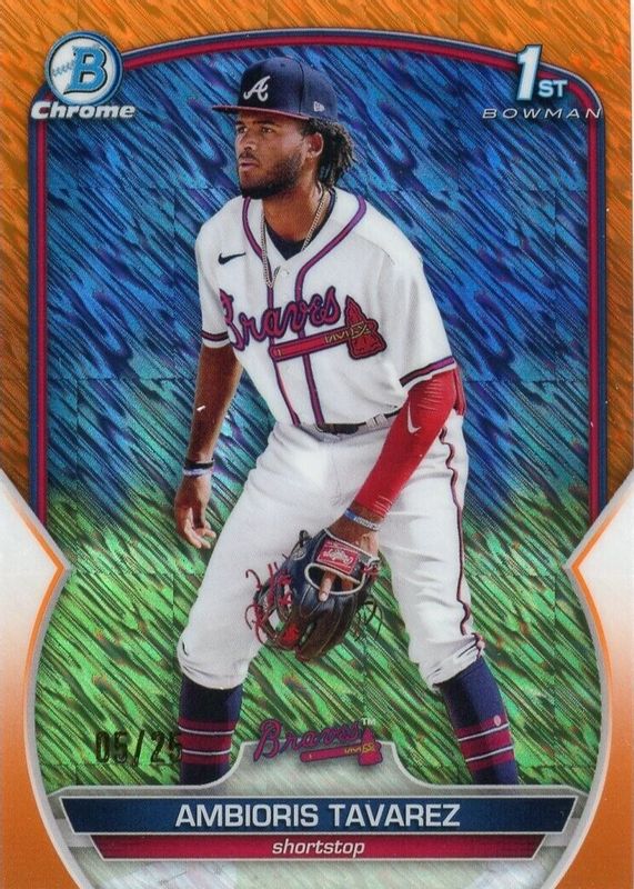 Best Prices Available For Sale of Ambioris Tavarez 2023 Bowman #BCP-33 Chrome Prospects - Orange Shimmer Refractor /25 (1st)