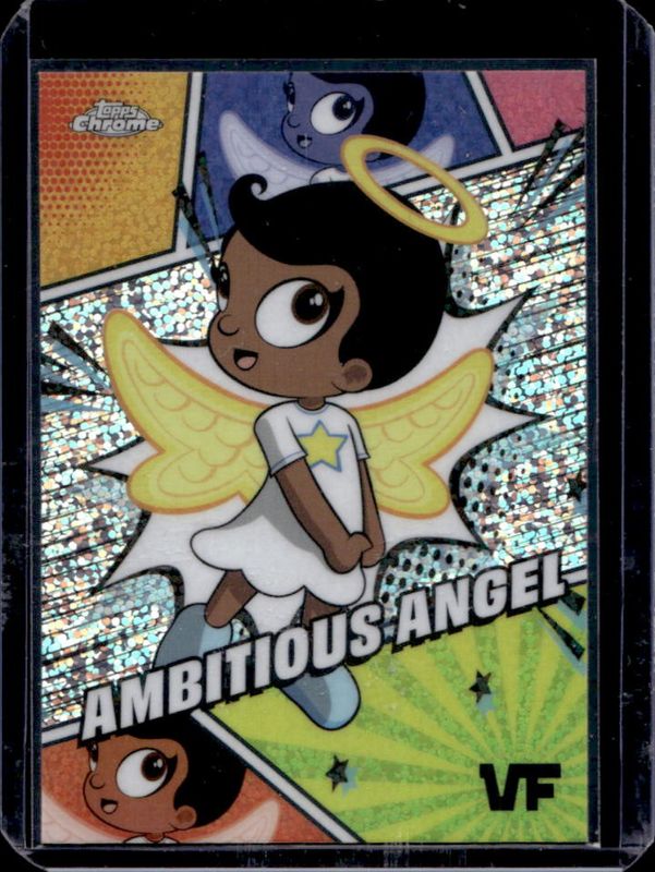 The Ambitious Angel 2025 Topps Chrome VeeFriends #MSS-11 Manga Speckle card is 1 of 22 Ambitious Angel's card variations in the 2025 Topps Chrome VeeFriends set being tracked by Sports Card Investor, including Base, Refractor, Yellow Refractor, Shimmer Refractor /250, and RayWave Refractor /199.