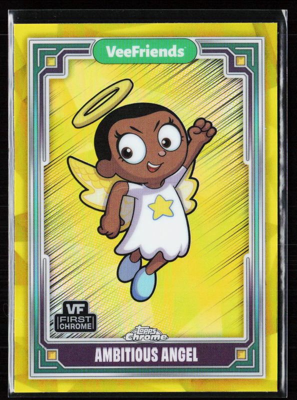 The Ambitious Angel 2025 Topps Chrome VeeFriends #11 Yellow Refractor card is 1 of 22 Ambitious Angel's card variations in the 2025 Topps Chrome VeeFriends set being tracked by Sports Card Investor, including Base, Refractor, Shimmer Refractor /250, RayWave Refractor /199, and Wave Refractor /150.