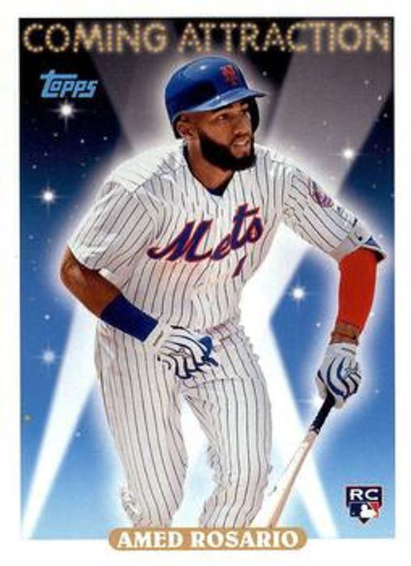 The Amed Rosario 2018 Topps Archives #CA-10 1993 Coming Attraction Rookie card is 1 of 18 Amed Rosario's card variations in the 2018 Topps Archives set being tracked by Sports Card Investor, including #108b Base, #108 Base, #108 1959 & 1977 Signatures Omissions, #108 Purple /175, and #108 Silver /99.