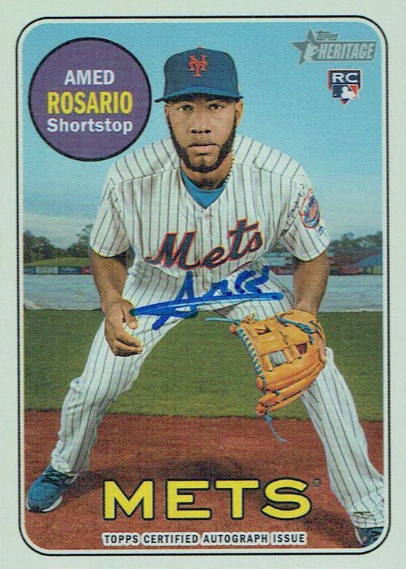 This card is 1 of 2 Amed Rosario's card variations in the 2018 Topps Heritage High Number set being tracked by Sports Card Investor, including Real One Autographs - Red Ink /69 (Fielding).