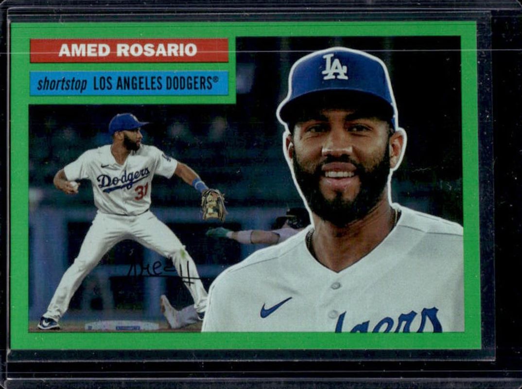The Amed Rosario 2023 Topps Archives #5 Green Foil /99 card is 1 of 8 Amed Rosario's card variations in the 2023 Topps Archives set being tracked by Sports Card Investor, including Base, Rainbow Foil /199, Aqua Sparkle Foil /75, Red Hot Foil /50, and Blue Foil /25.