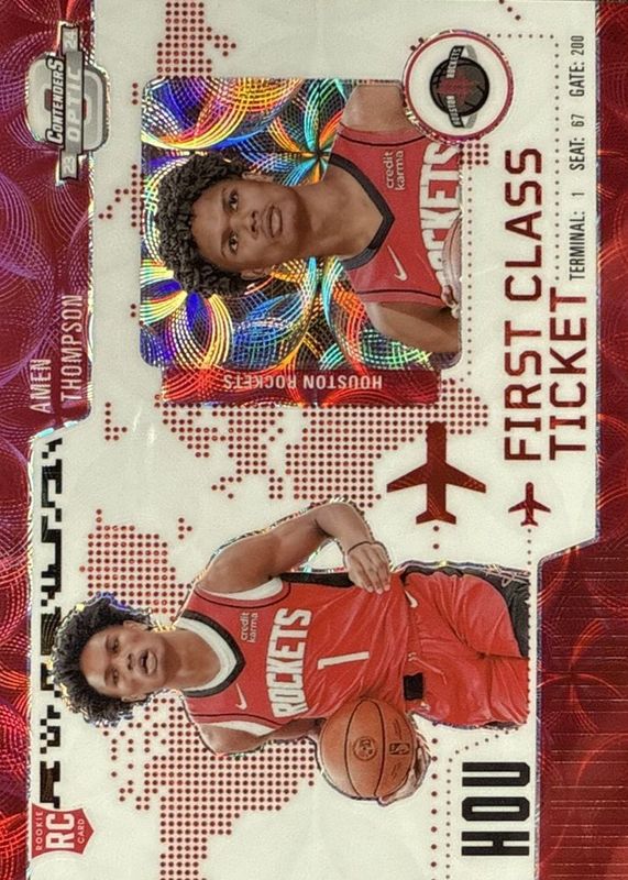 Auctions Ending Soon for Amen Thompson 2023 Contenders Optic #15 First Class Ticket - International Red Rookie RAW