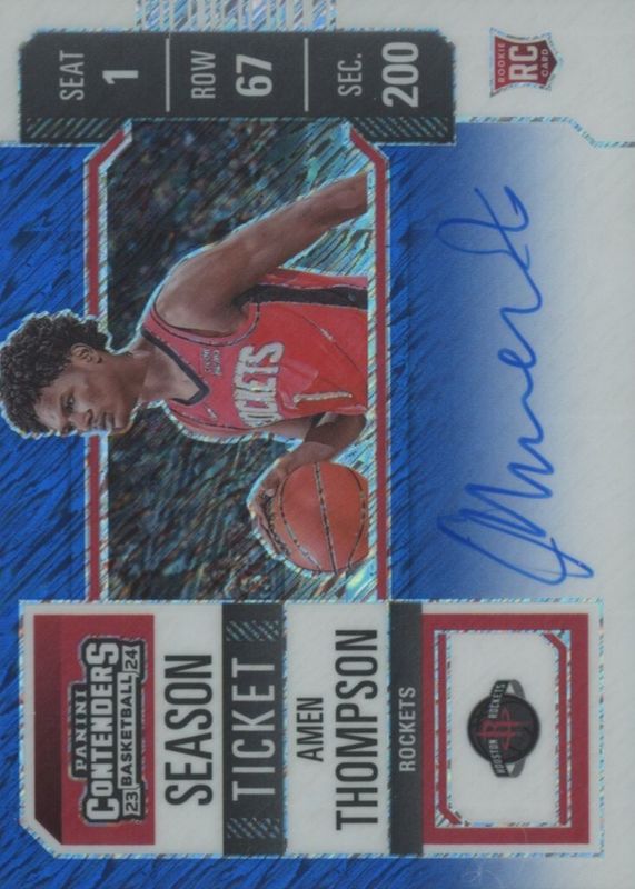 This card is 1 of 28 Amen Thompson's card variations in the 2023 Contenders set being tracked by Sports Card Investor, including Rookie Ticket Auto, Rookie Ticket Auto - Premium, Rookie Ticket Auto - Premium Green Shimmer, Rookie Ticket Auto - Ticket Stub (/1), and Rookie Ticket Auto Variation.
