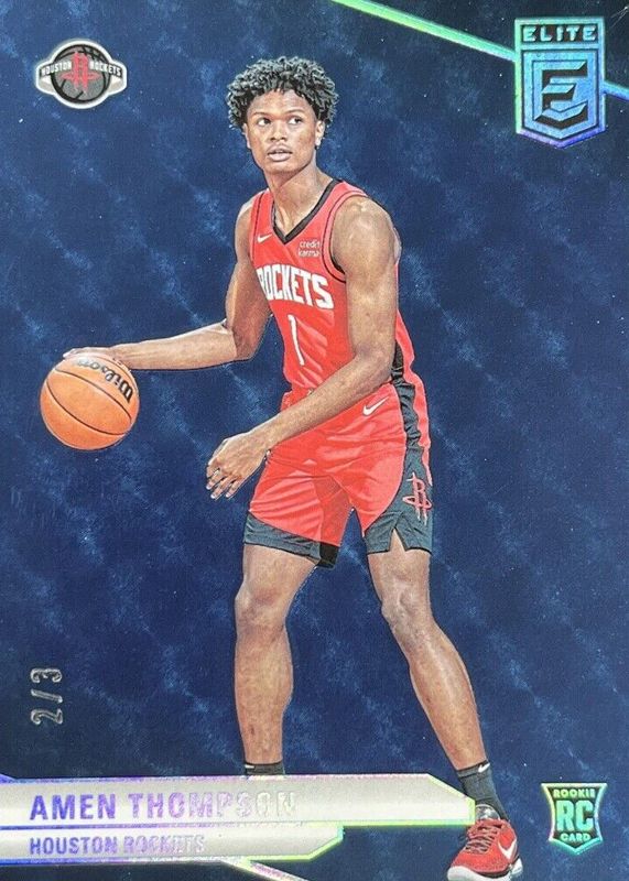 The Amen Thompson 2023 Elite #246 Platinum /3 Rookie card in Raw condition has not changed in price in the last 30 days and was last sold for $445.00 .
