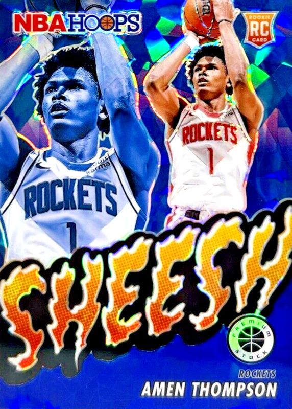 2023-2024 NBA Hoops Premium Stock Sheesh Amen Thompson Blue Ice /99!