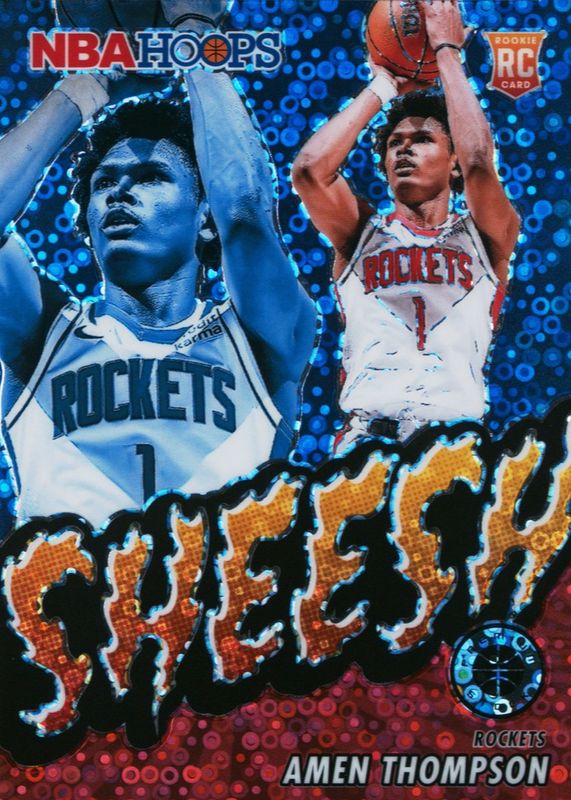 2023-24 Nba Hoops Premium Stock Amen Thompson Sheesh #4 Red Disco Prizm (RC) /99
