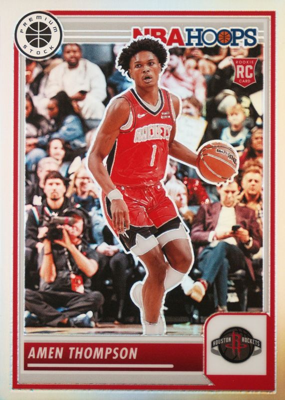 The Amen Thompson 2023 Hoops Premium Stock #86 Silver Rookie card in Raw condition has moved down -$1.74 (-43.6%) in the last 30 days and was last sold for $2.25 .