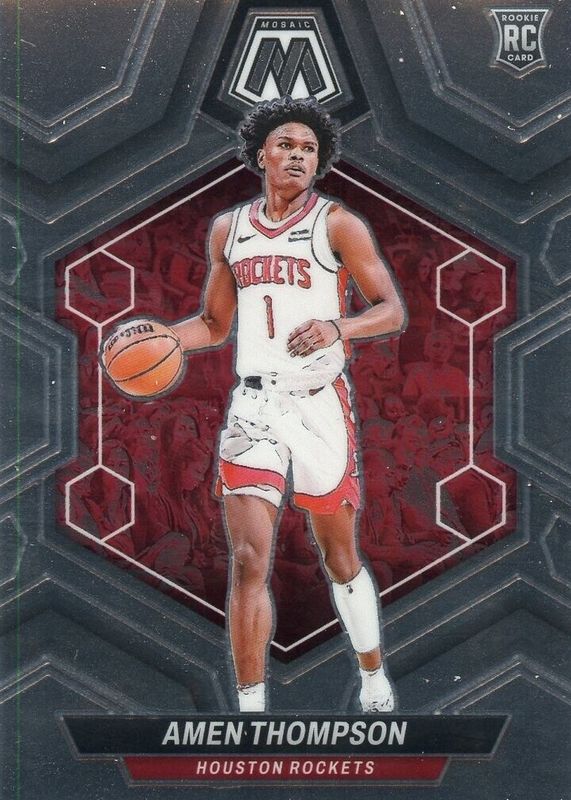 The Amen Thompson 2023 Mosaic #230 Base Rookie card in Raw condition has moved down -$0.74 (-37.2%) in the last 30 days and was last sold for $1.25 .