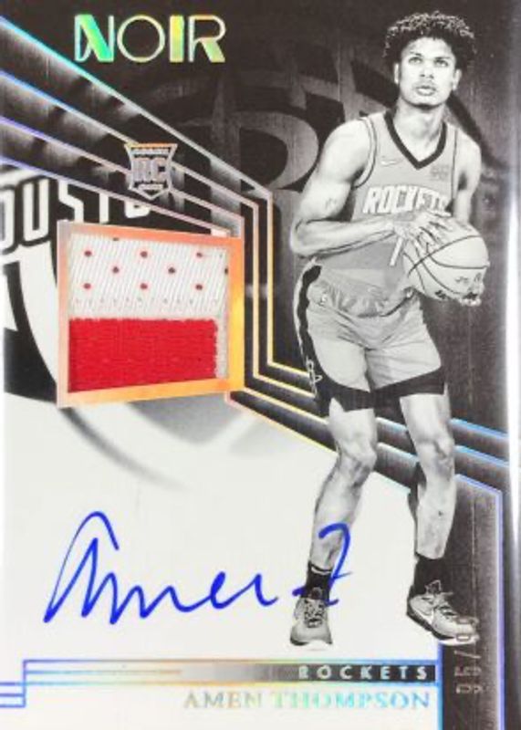 The Amen Thompson 2023 Noir #302 Rookie Patch Auto Black & White /99 card in Raw condition has not changed in price in the last 30 days and was last sold for $173.50 .