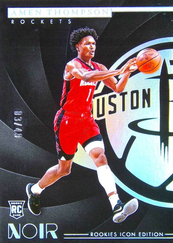 The Amen Thompson 2023 Noir #188 Rookies Icon Edition - Holo Silver /49 card in Raw condition has not changed in price in the last 30 days and was last sold for $31.00 .