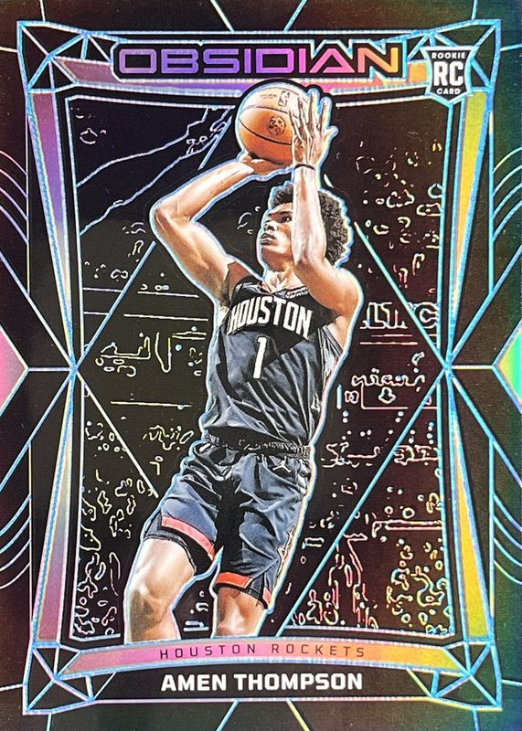 Amen Thompson 2023-24 Panini Obsidian RC Electric Etch Blue 7/30 Houston Rockets