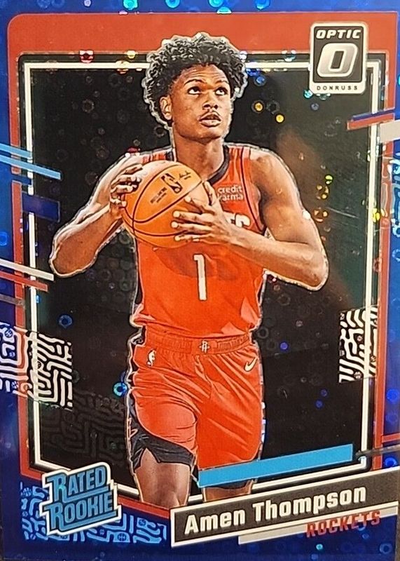 2023-24 Donruss Optic #229 Amen Thompson RC Rookie Blue Prizm /49 Rockets RC