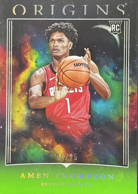 2023-24 Panini Origins Amen Thompson RC Rookie Neon Green 01 /25 Rockets #99