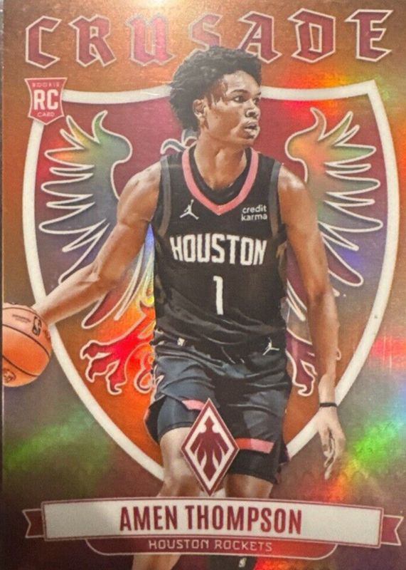 The Amen Thompson 2023 Phoenix #17 Crusade Rookie card in Raw condition has not changed in price in the last 30 days and was last sold for $22.00 .