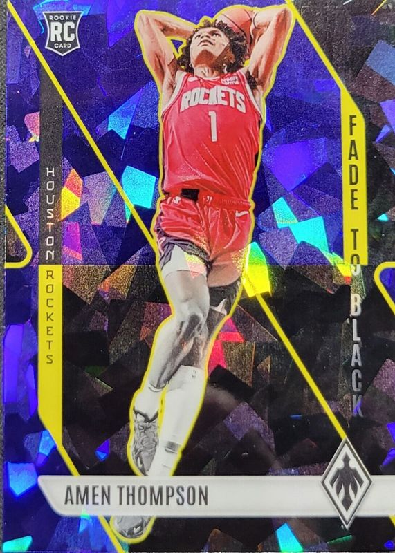 The Amen Thompson 2023 Phoenix #21 Fade to Black - Blue Ice Rookie card in Raw condition has moved up $3.01 (+304%) in the last 30 days and was last sold for $4.00 .