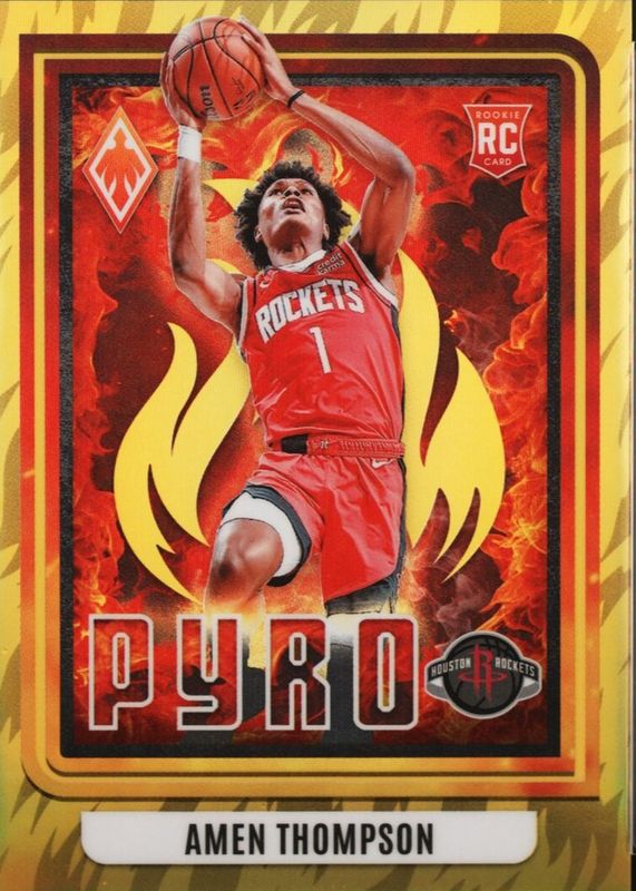 23-24 Phoenix Amen Thompson Pyro Rookie Card (RC) #21 Yellow /35 Houston Rockets