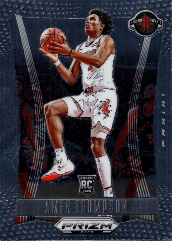 The Amen Thompson 2023 Prizm Deca #294 Base Rookie card in Raw condition has moved down -$3.00 (-75.2%) in the last 30 days and was last sold for $0.99 .