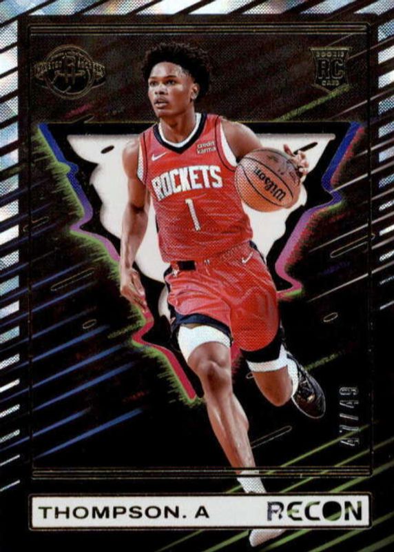 This card is 1 of 79 Amen Thompson's card variations in the 2023 Recon set being tracked by Sports Card Investor, including Base, Dots, Holo, Bronze /299, and Red /199.