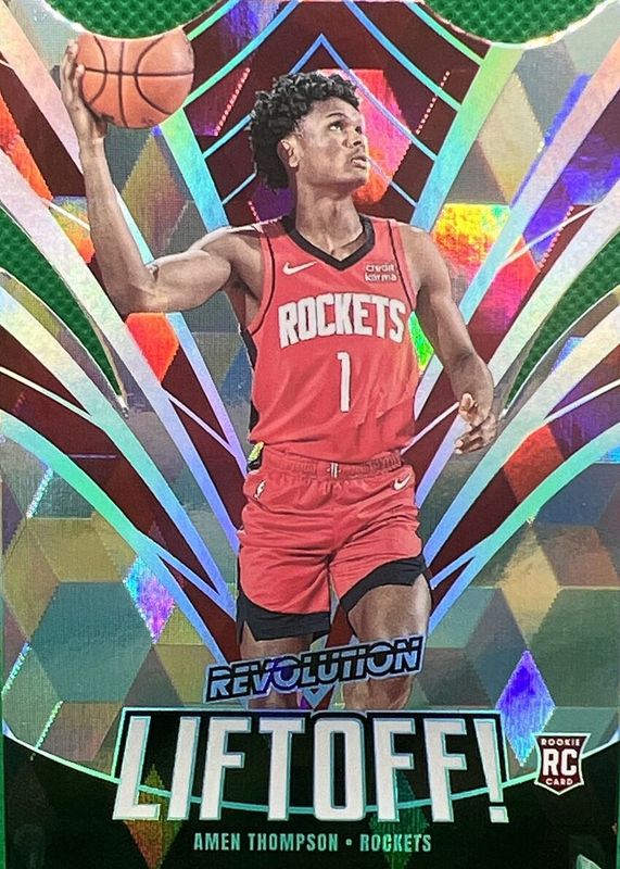The Amen Thompson 2023 Revolution #8 Liftoff! - Cubic /50 Rookie card in Raw condition has not changed in price in the last 30 days and was last sold for $16.29 .