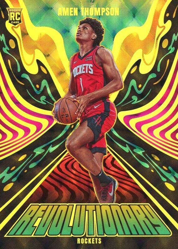 The Amen Thompson 2023 Revolution #11 Revolutionary /(SSP) Rookie card in Raw condition has moved down -$1.50 (-2.6%) in the last 30 days and was last sold for $56.00 .