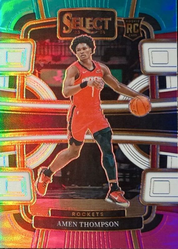 Amen Thompson 2023-24 Select Teal White Pink Concourse /49 Rookie Rockets RC SP