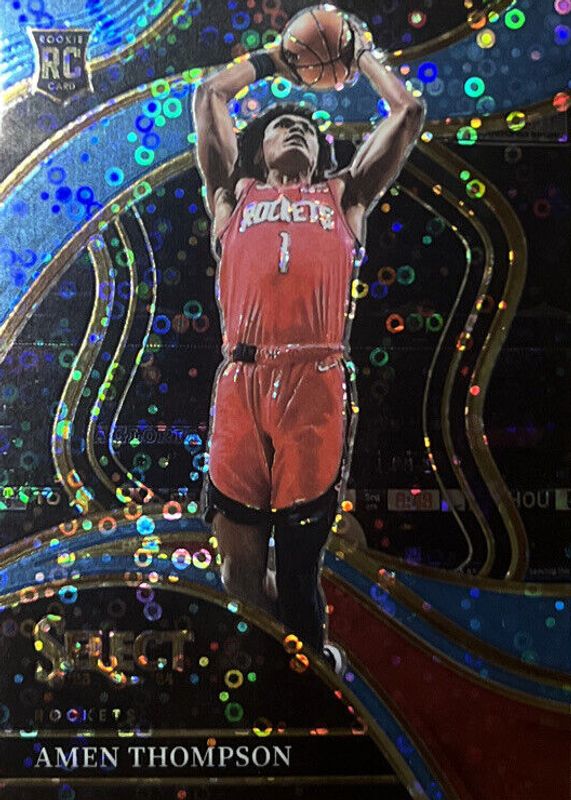 2023-24 Select Amen Thompson RC Light Blue Disco Prizms Courtside #/99 Rockets