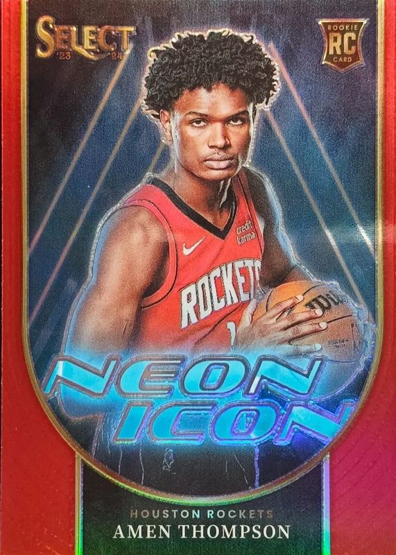AMEN THOMPSON 2023-24 Panini Select Neon Icon Red Prizm Rc #20 Houston Rockets