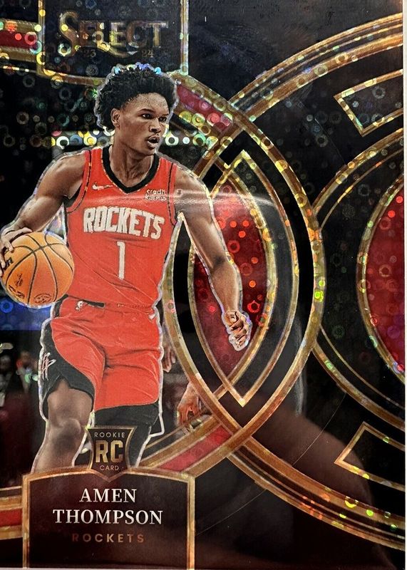 The Amen Thompson 2023 Select #122 Premier Level Black Disco /1 Rookie card in Raw condition has not changed in price in the last 30 days and was last sold for $1,599.00 .