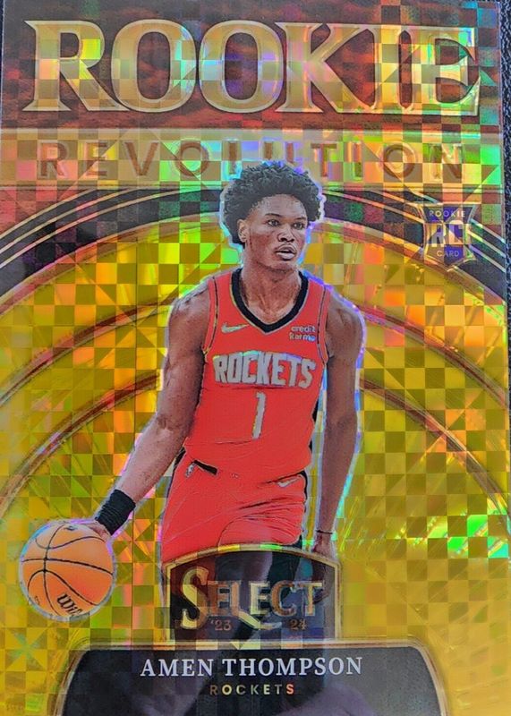 The Amen Thompson 2023 Select #14 Rookie Revolution - Gold /10 card in Raw condition has not changed in price in the last 30 days and was last sold for $148.45 .