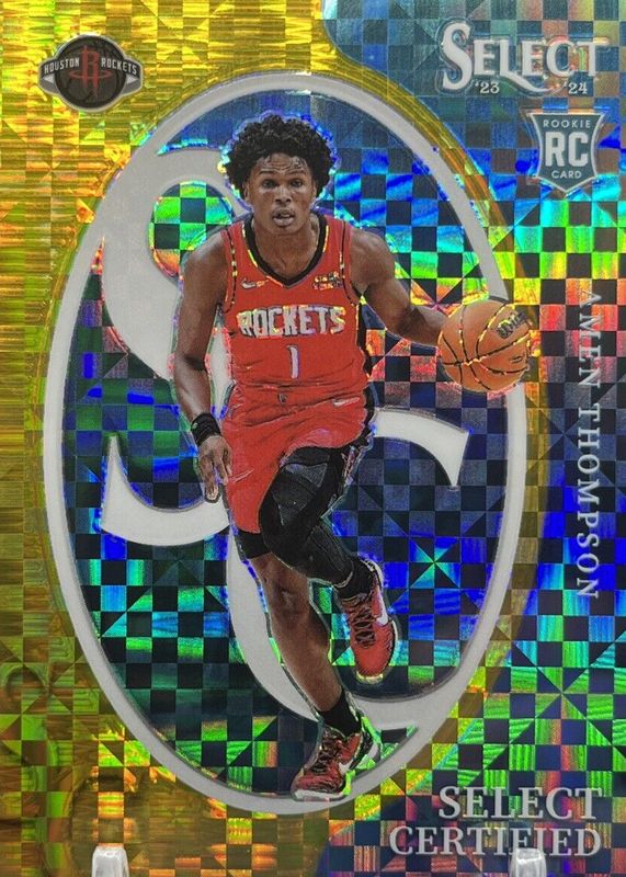 The Amen Thompson 2023 Select #5 Select Certified - Gold /10 Rookie card in Raw condition has not changed in price in the last 30 days and was last sold for $250.00 .