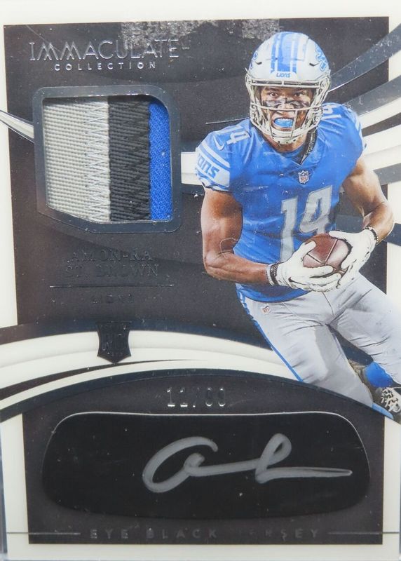 The Amon-Ra St. Brown 2021 Immaculate #REB-ASB Immaculate Rookie Eye Black Jersey Autographs (/99) card in Raw condition has not changed in price in the last 30 days and was last sold for $212.50 .
