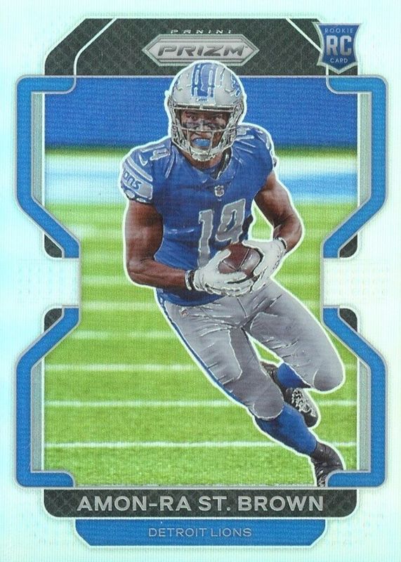 The Amon-Ra St. Brown 2021 Prizm #358 Silver Rookie card in Raw condition has moved up $1.75 (+20.0%) in the last 30 days and was last sold for $10.51 .