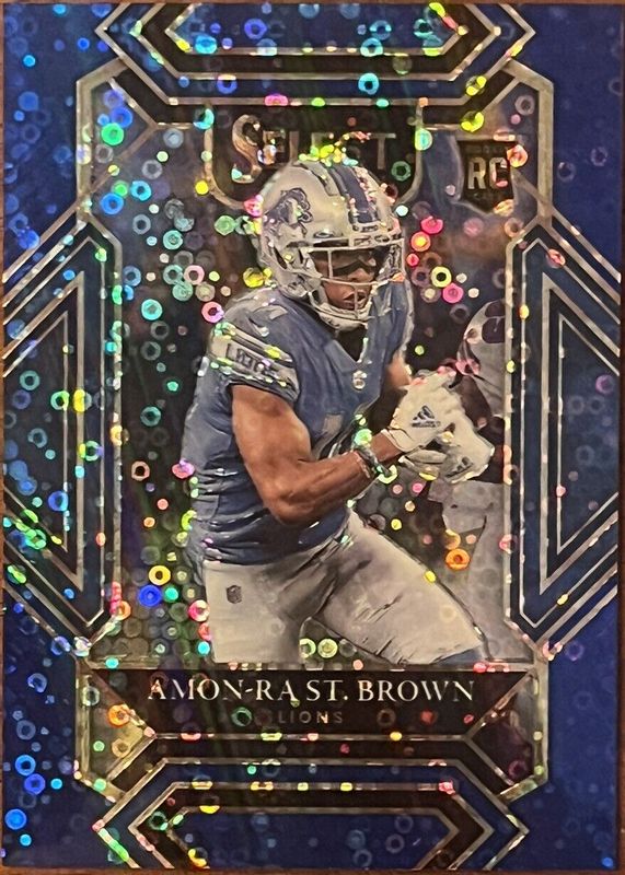 The Amon-Ra St. Brown 2021 Select #273 Club Level Blue Disco /25 Rookie card in Raw condition has not changed in price in the last 30 days and was last sold for $149.99 .