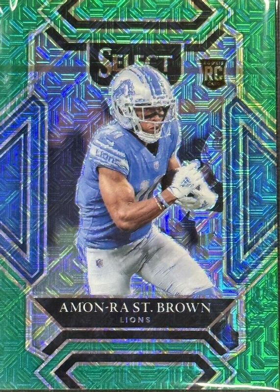The Amon-Ra St. Brown 2021 Select #273 Club Level Green /5 Rookie card in Raw condition has not changed in price in the last 30 days and was last sold for $240.00 .