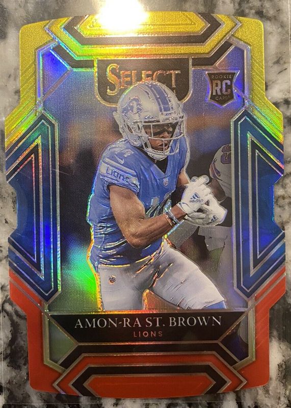 The Amon-Ra St. Brown 2021 Select #273 Club Level Red & Yellow Die-Cut Rookie card in Raw condition has not changed in price in the last 30 days and was last sold for $4.00 .