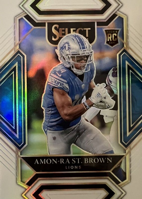 The Amon-Ra St. Brown 2021 Select #273 Club Level White /35 Rookie card in Raw condition has not changed in price in the last 30 days and was last sold for $42.85 .