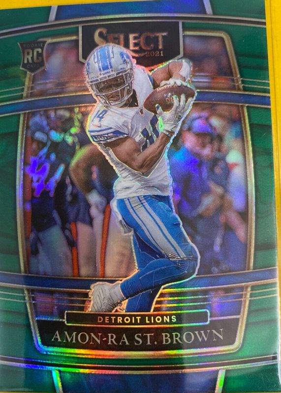 The Amon-Ra St. Brown 2021 Select #73 Concourse Green /5 Rookie card in Raw condition has not changed in price in the last 30 days and was last sold for $76.00 .