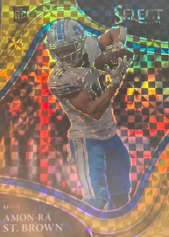 The Amon-Ra St. Brown 2021 Select #373 Field Level Gold /10 Rookie card in Raw condition has not changed in price in the last 30 days and was last sold for $335.00 .