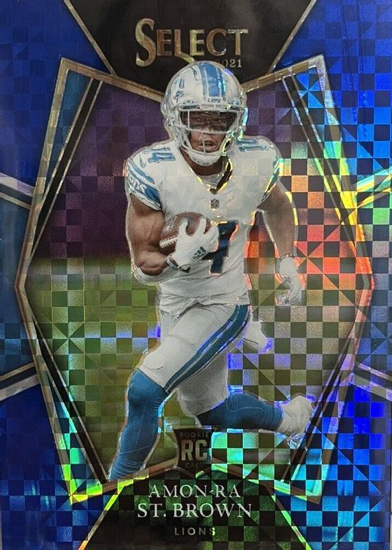 2021 Panini Select Amon-Ra St. Brown Blue Checkerboard Rookie /149 No. 173 Lions