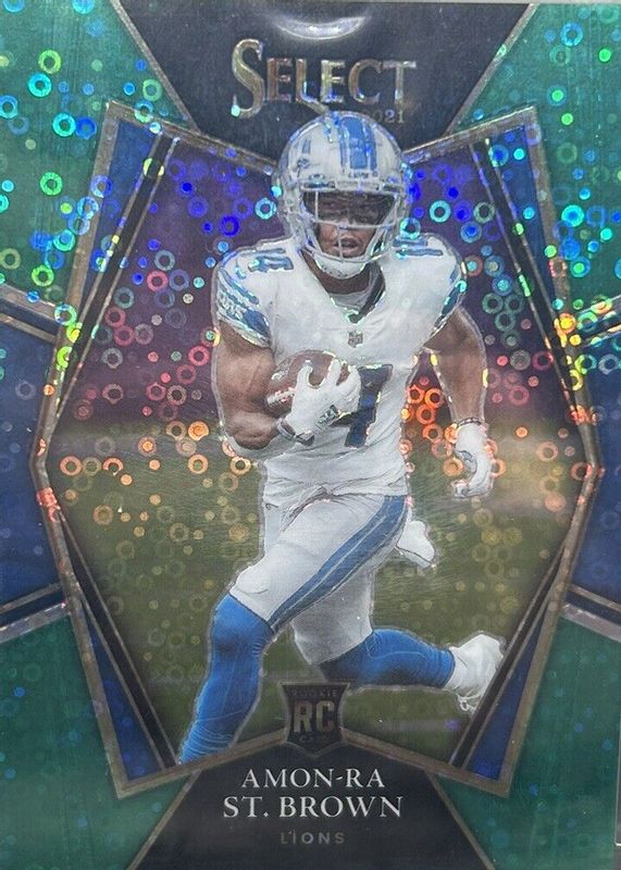 Best Prices Available For Sale of Amon-Ra St. Brown 2021 Select #173 Premier Level Green Disco /5