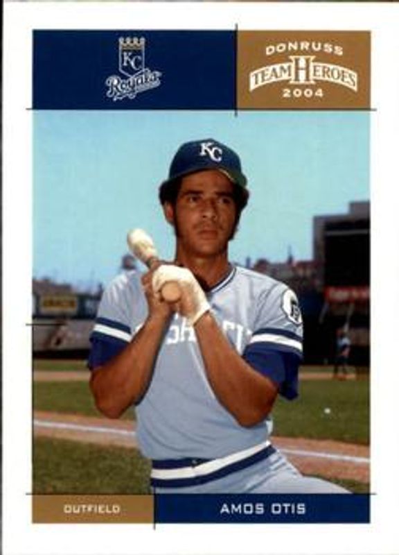 The Amos Otis 2004 Donruss Team Heroes #205 Base card is 1 of 5 Amos Otis' card variations in the 2004 Donruss Team Heroes set being tracked by Sports Card Investor, including Showdown - Bronze /150, Showdown - Silver /50, Showdown - Gold /10, and Autographs /10.