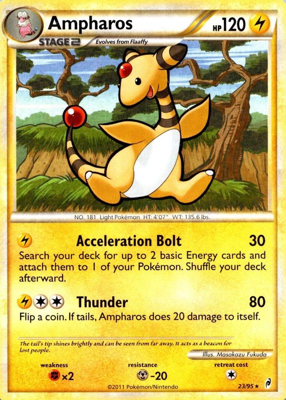The Ampharos 2011 Call of Legends #23/95 Base card in Raw TCG (Lightly Played) condition has moved down -$0.19 (-6.4%) in the last 30 days and was last sold for $2.80 .