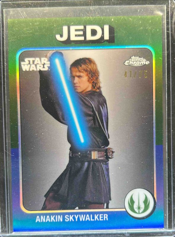 The Anakin Skywalker 2025 Topps Chrome Star Wars #TB-3 1975 Tribute /75 card is 1 of 34 Anakin Skywalker's card variations in the 2025 Topps Chrome Star Wars set being tracked by Sports Card Investor, including Base, Black & White Shimmer Refractor, Blue Pulsar Refractor, Prism Refractor, and Purple Pulsar Refractor.