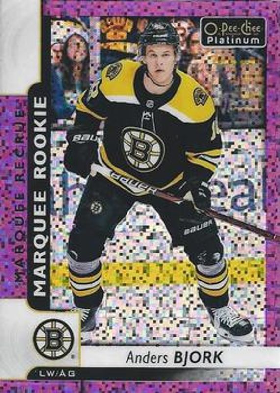 The Anders Bjork 2017 O-Pee-Chee Platinum #172 Violet Pixels Rookie card is 1 of 29 Anders Bjork's card variations in the 2017 O-Pee-Chee Platinum set being tracked by Sports Card Investor, including Base, Rainbow, Red Prism /199, Royal Blue Cubes /99, and Seismic Gold /50.