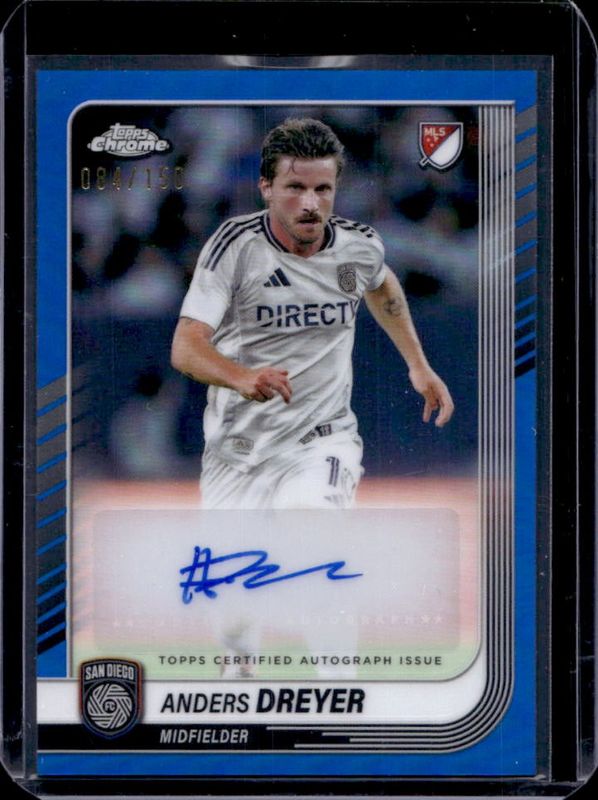 Anders Dreyer 2025 Topps Chrome MLS #CA-AD Chrome Autographs - Blue Refractor /150 RAW Price Guide