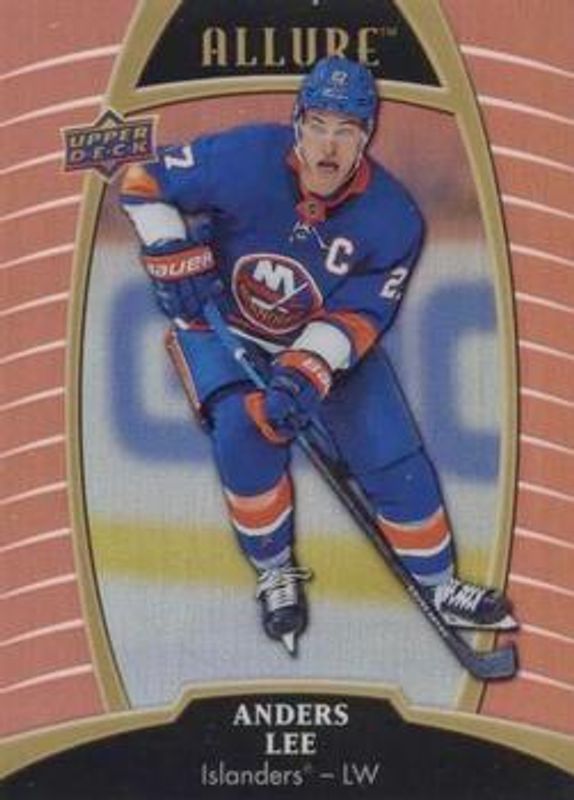 The Anders Lee 2019 Upper Deck Allure #29 Sunset card is 1 of 27 Anders Lee's card variations in the 2019 Upper Deck Allure set being tracked by Sports Card Investor, including Base, Pewter, Red Rainbow, White Rainbow, and Yellow Taxi.