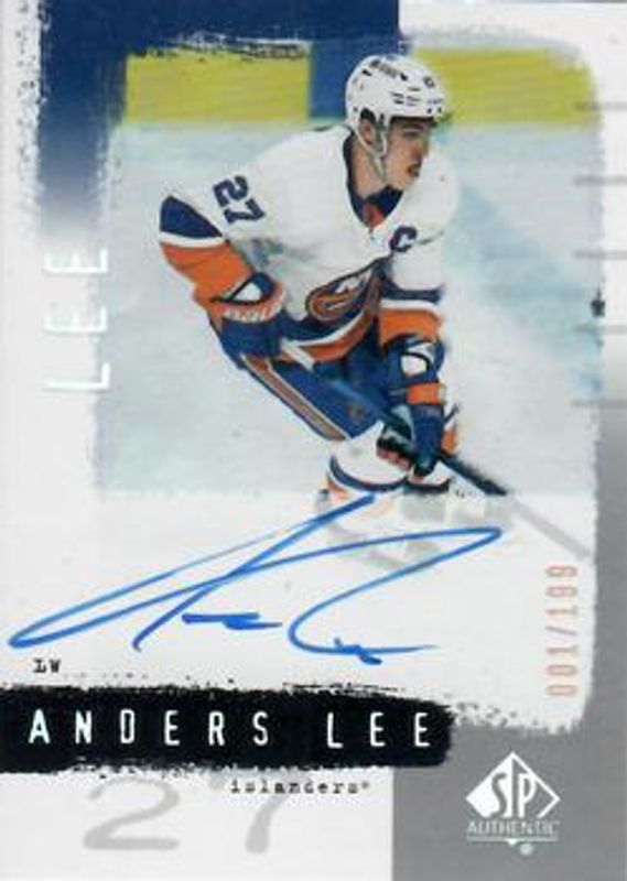 The Anders Lee 2020 SP Authentic #R-LE 2000 Retro Autographs /10 card is 1 of 11 Anders Lee's card variations in the 2020 SP Authentic set being tracked by Sports Card Investor, including Base /999, Black Gold Ink, Limited Autographs, Limited Red, and 2000 Retro.