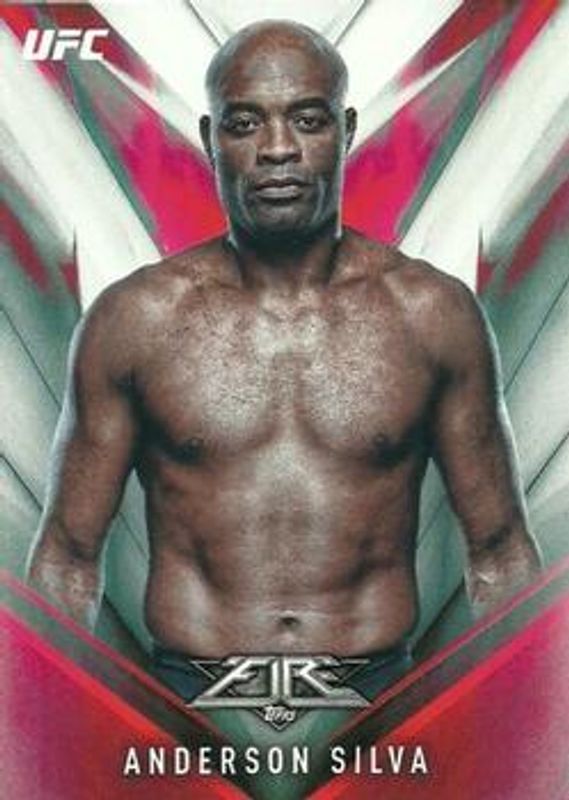 The Anderson Silva 2017 Topps Fire UFC #3 Base card is 1 of 8 Anderson Silva's card variations in the 2017 Topps Fire UFC set being tracked by Sports Card Investor, including Red Hot /142, Blue Flame /25, Inferno /1, Fired Up, and Autographs /149.
