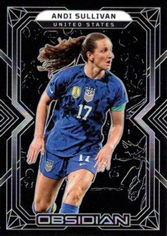 The Andi Sullivan 2022 Obsidian #124 Base /115 card is 1 of 24 Andi Sullivan's card variations in the 2022 Obsidian set being tracked by Sports Card Investor, including Electric Etch Orange /40, Electric Etch Red Pulsar /30, Electric Etch Purple Flood /25, Electric Etch Blue /20, and Electric Etch Neon Blue Flood /12.